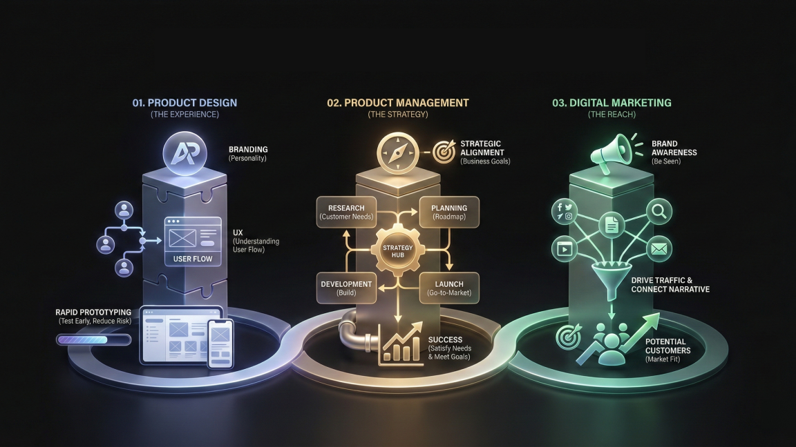 For a product to truly fulfill its vision, it must transcend the initial concept. Success requires a seamless integration of three critical disciplines: Design, Management, and Marketing.